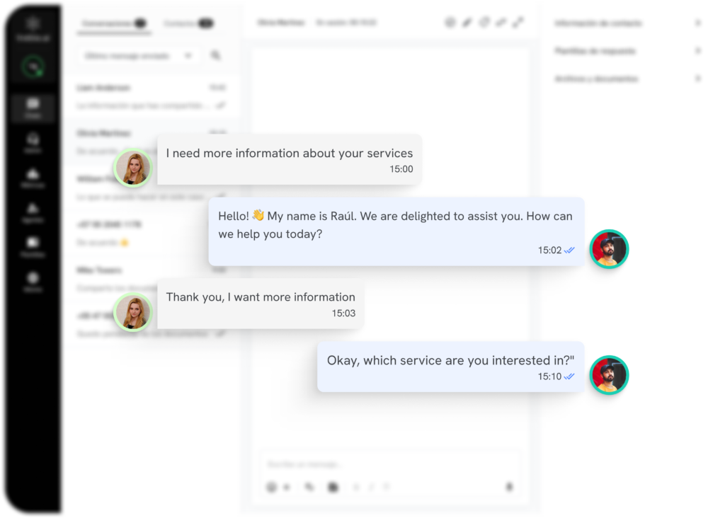 This allows every message to update data, trigger automated actions, and generate real-time customer traceability. No more lost information, no more isolated conversations.