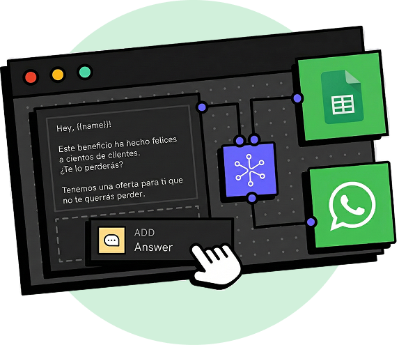 Esta integración transforma Google Sheets en un hub vivo de información, sincronizado con tus flujos de WhatsApp. Conecta datos, mensajes y procesos directamente a tus planillas online.